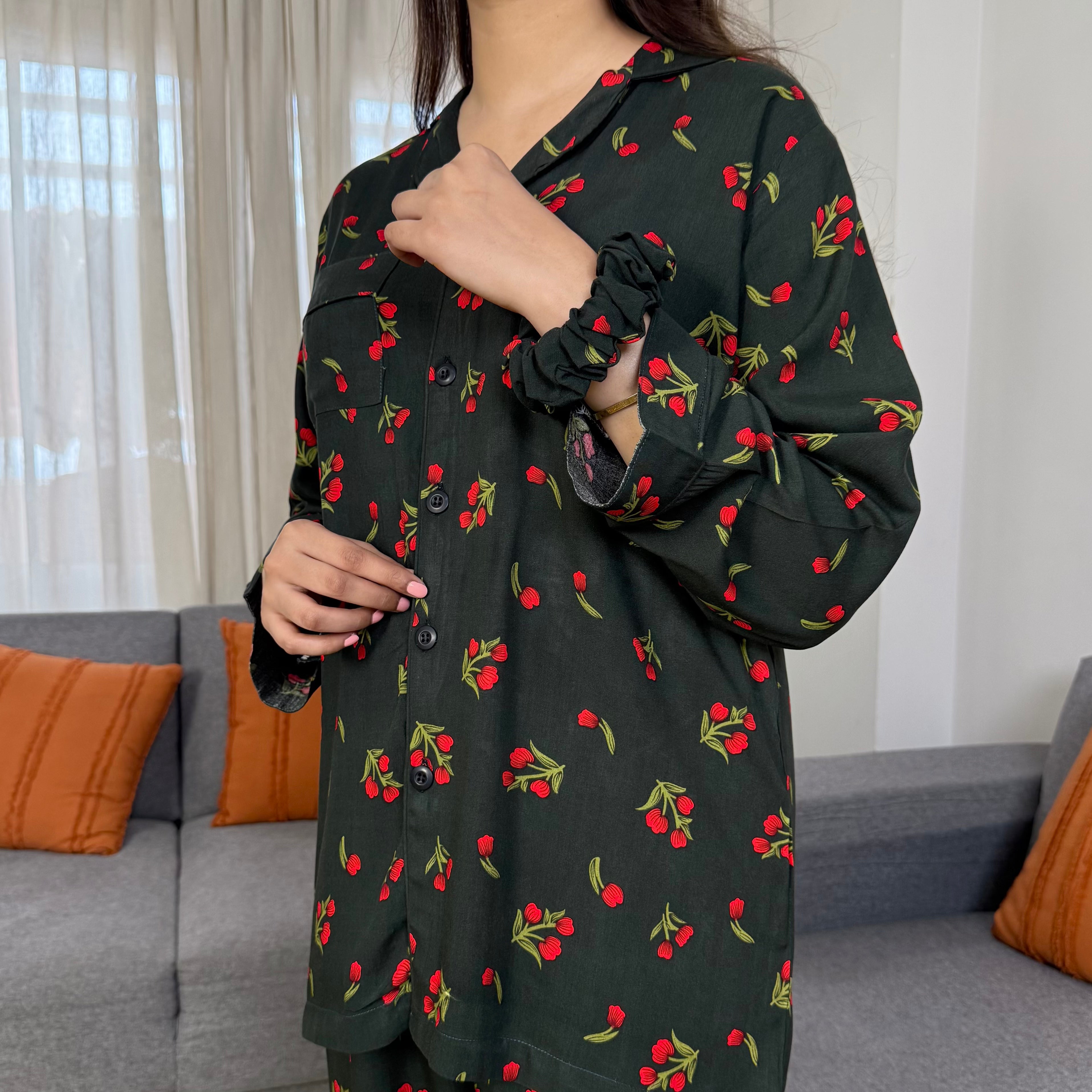EMERALD PETALS LINEN PJS