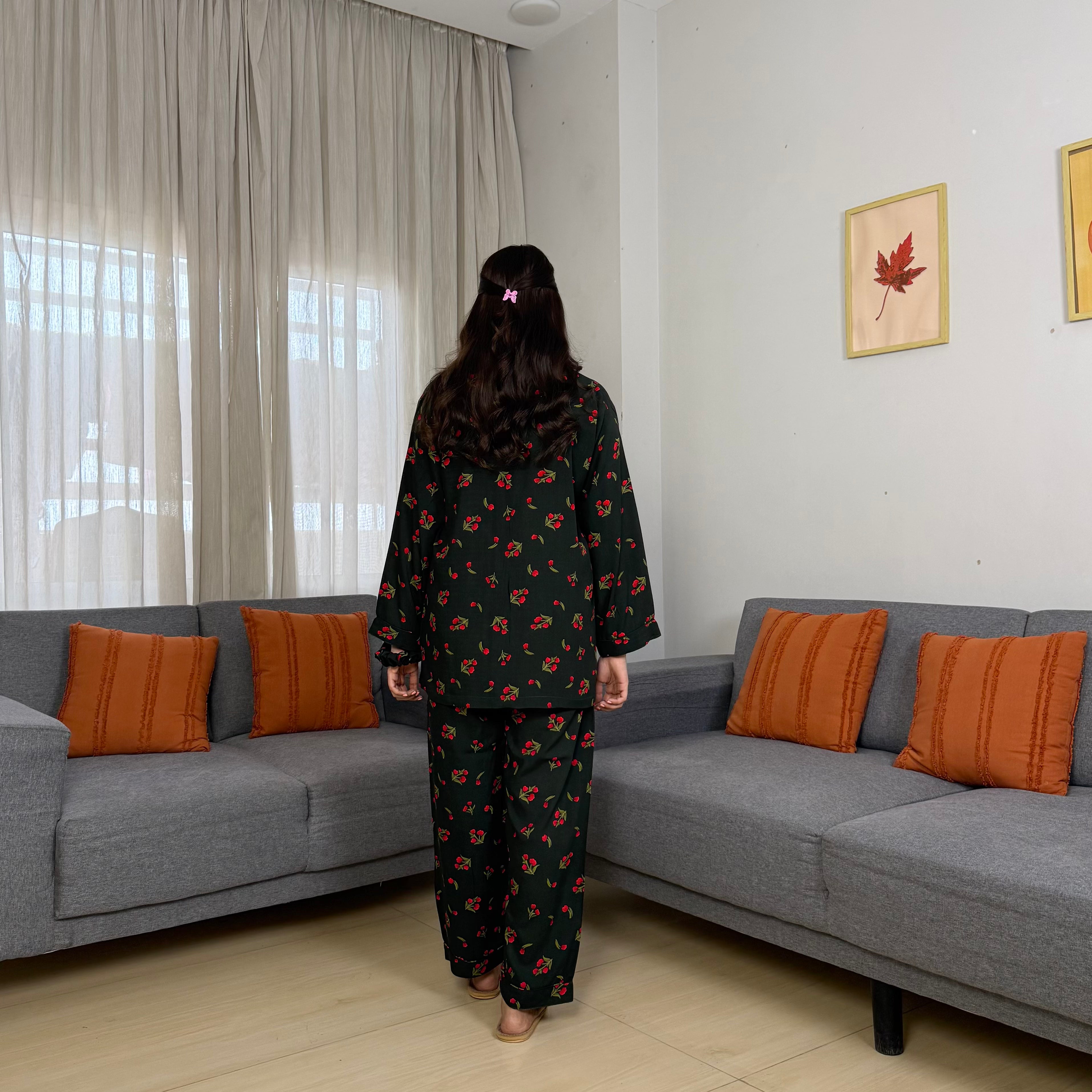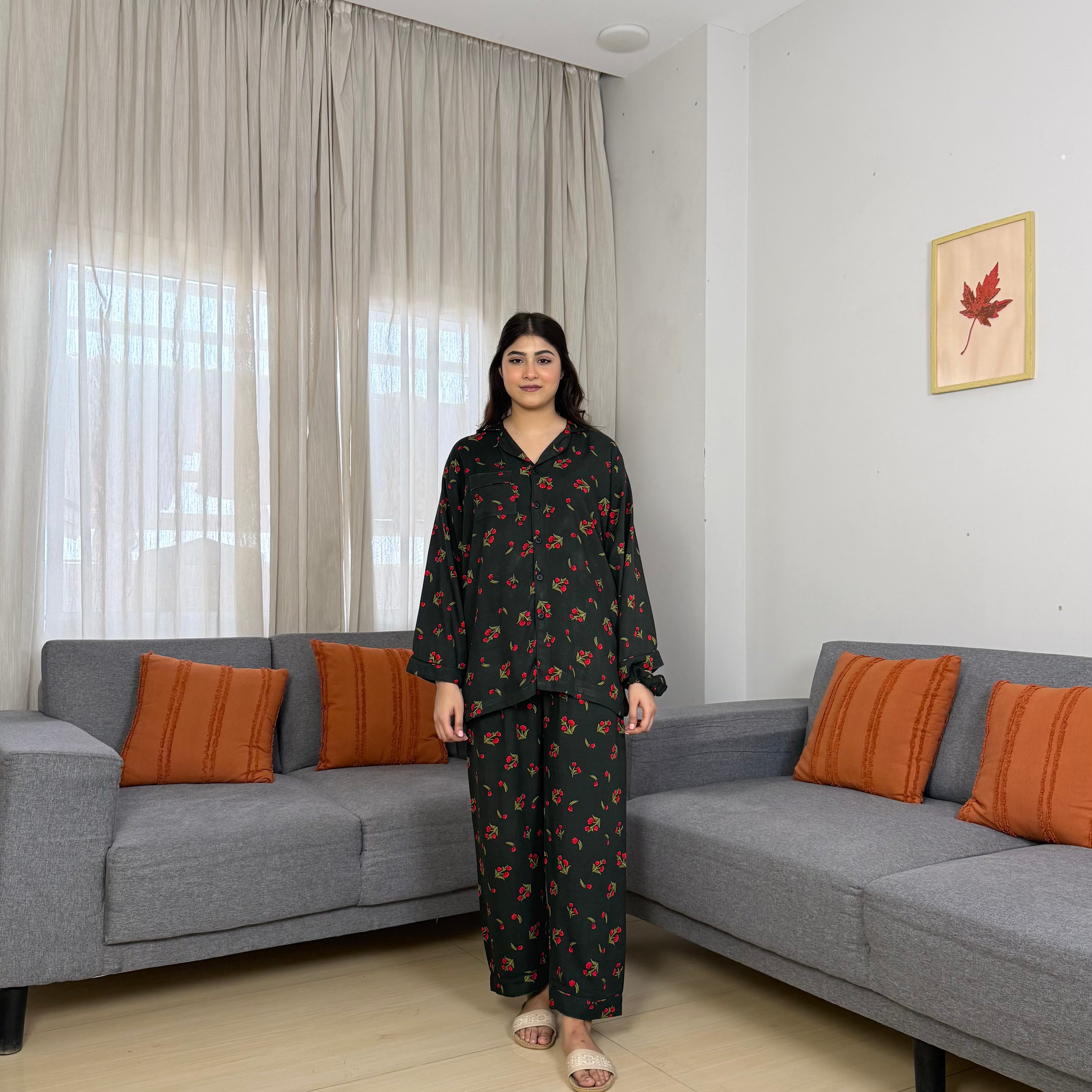 WOMEN PRINTED LINEN PJS