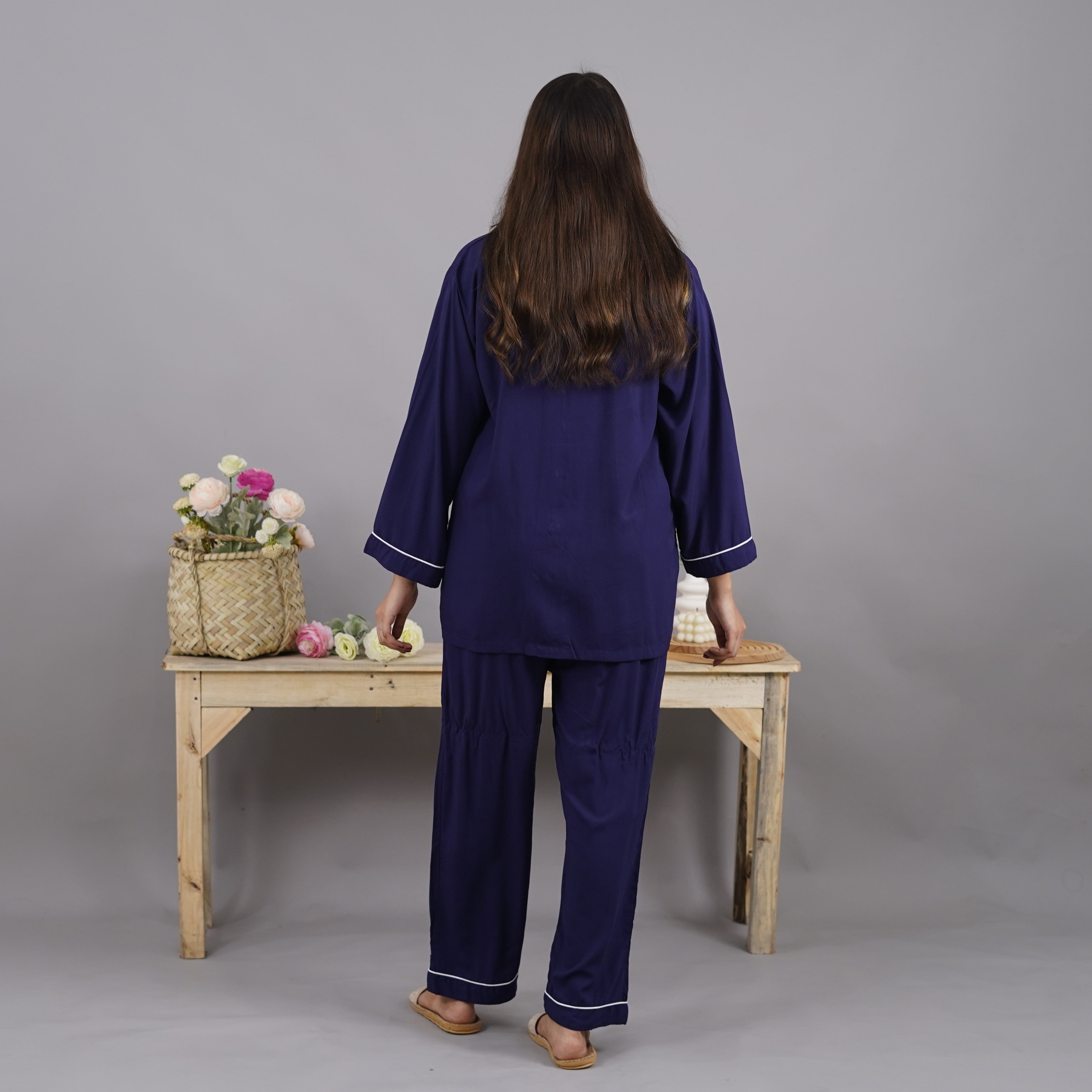 MIDNIGHT BLUE SOLID LINEN PJS.