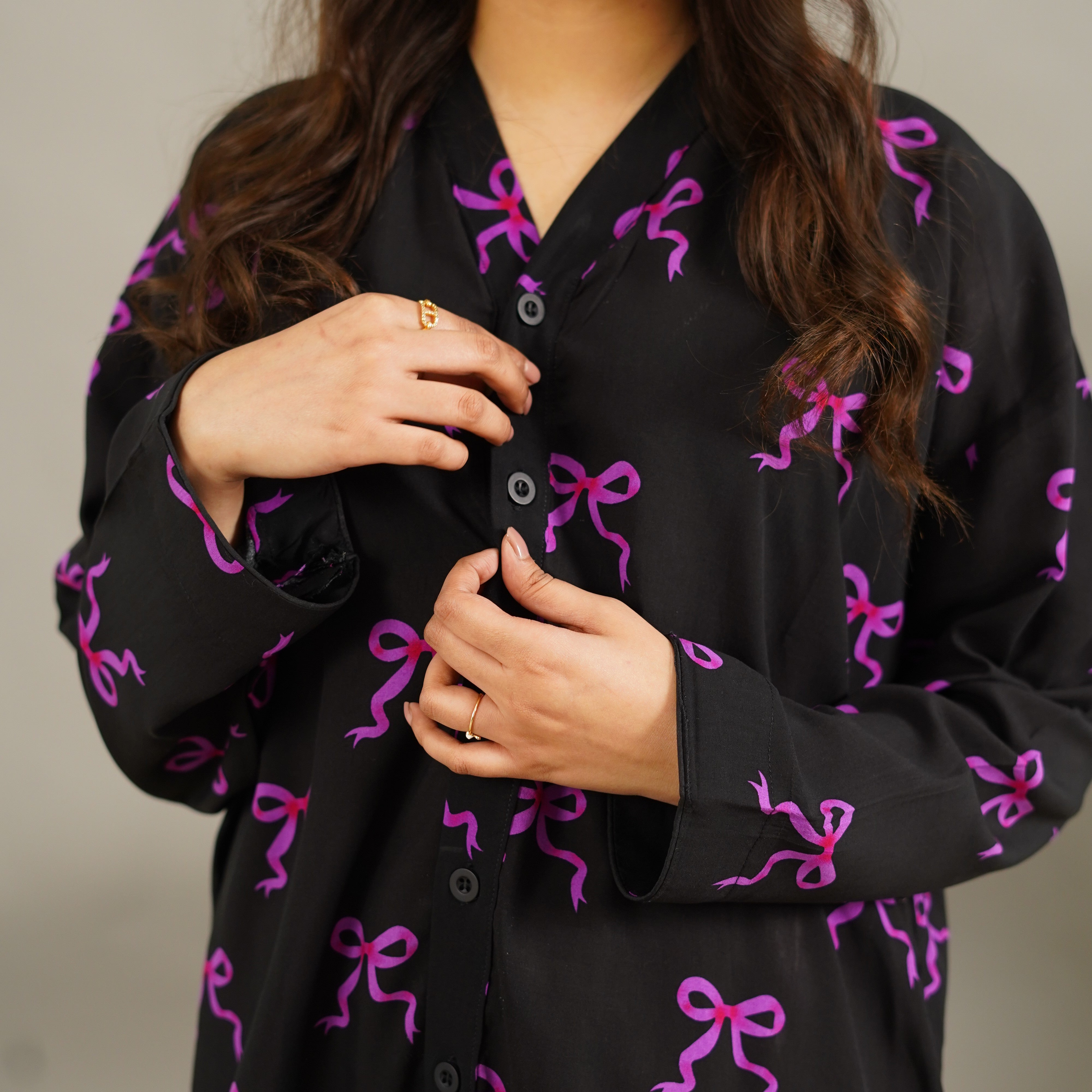 TWIRLY BOW SUMMER LINEN MATERNITY/MODEST PJS