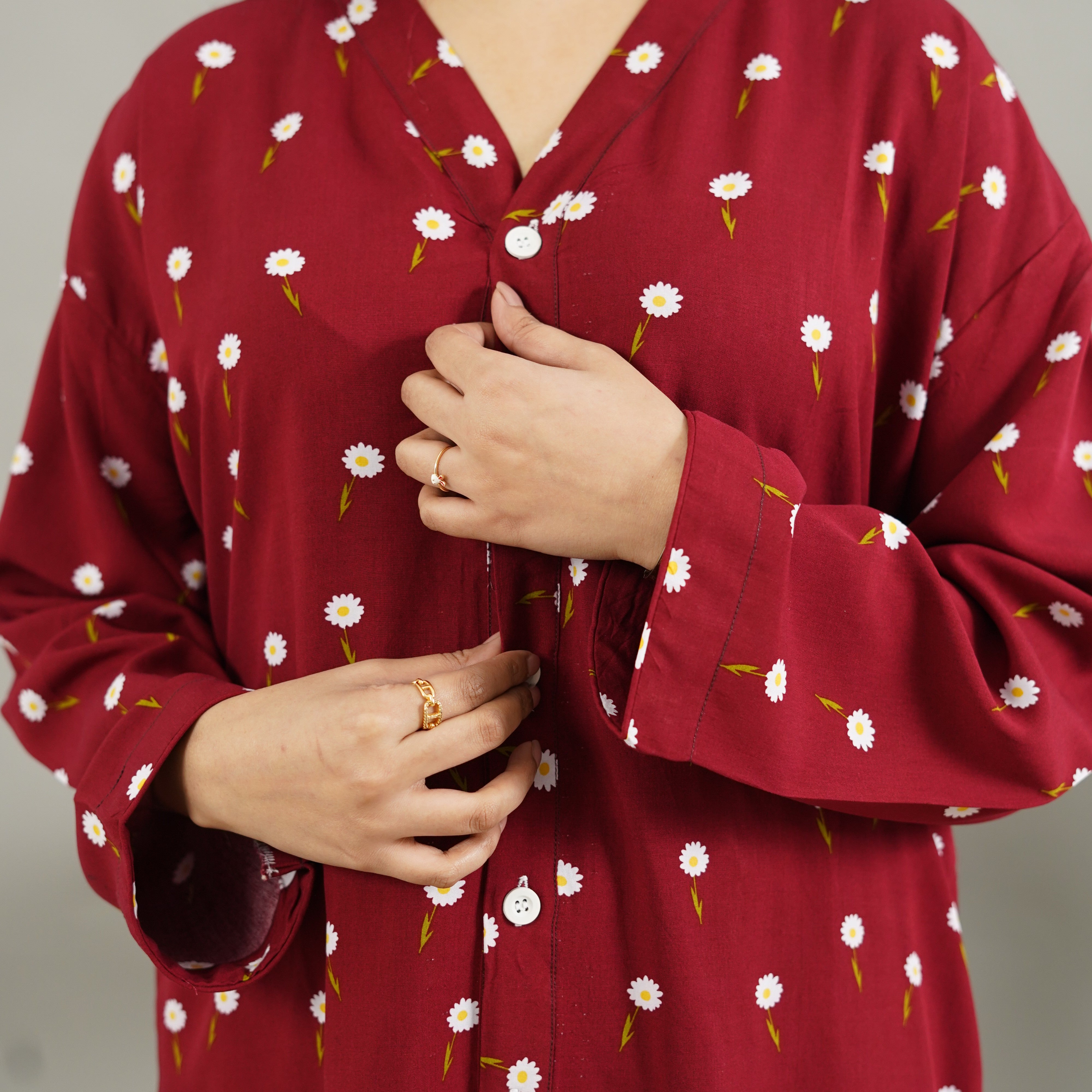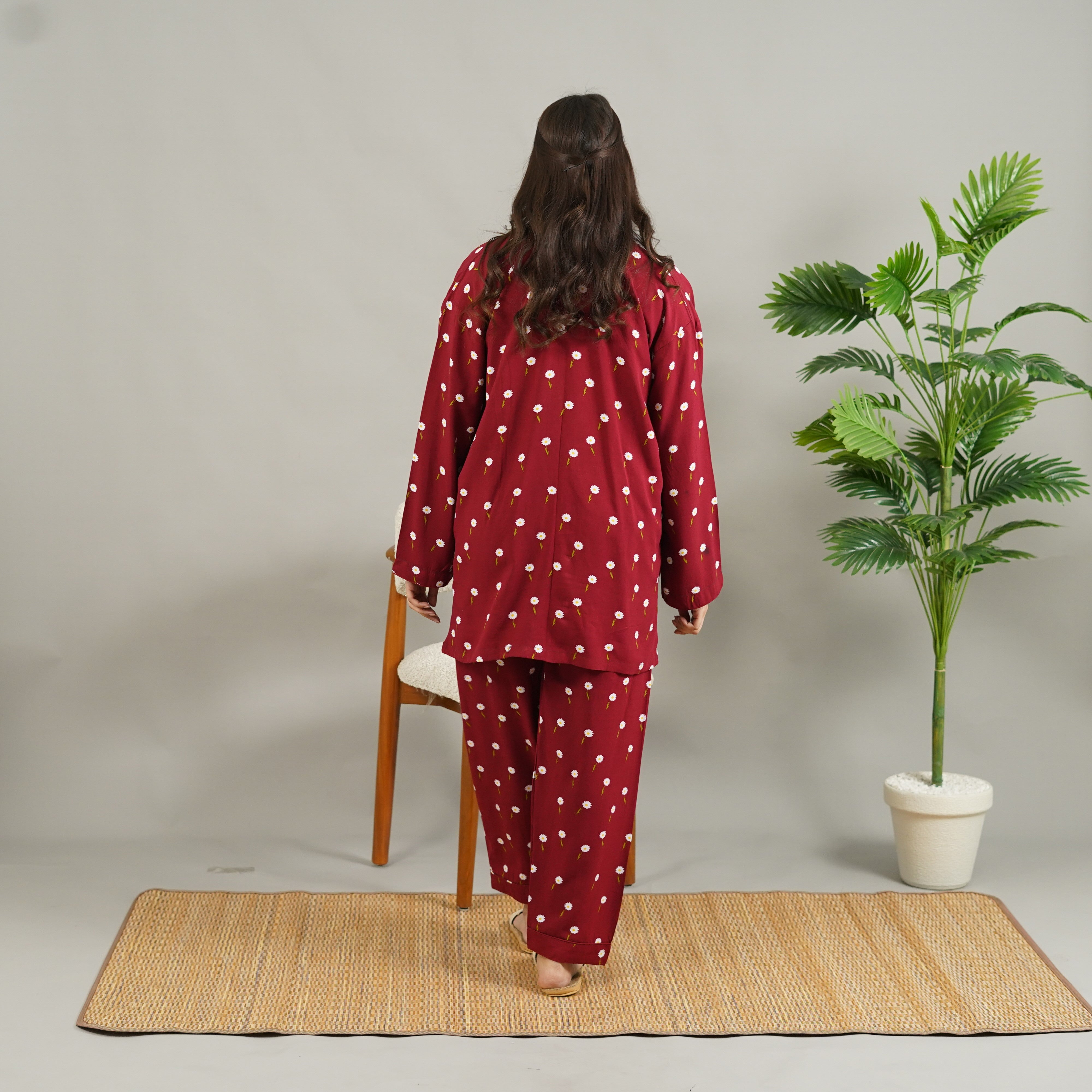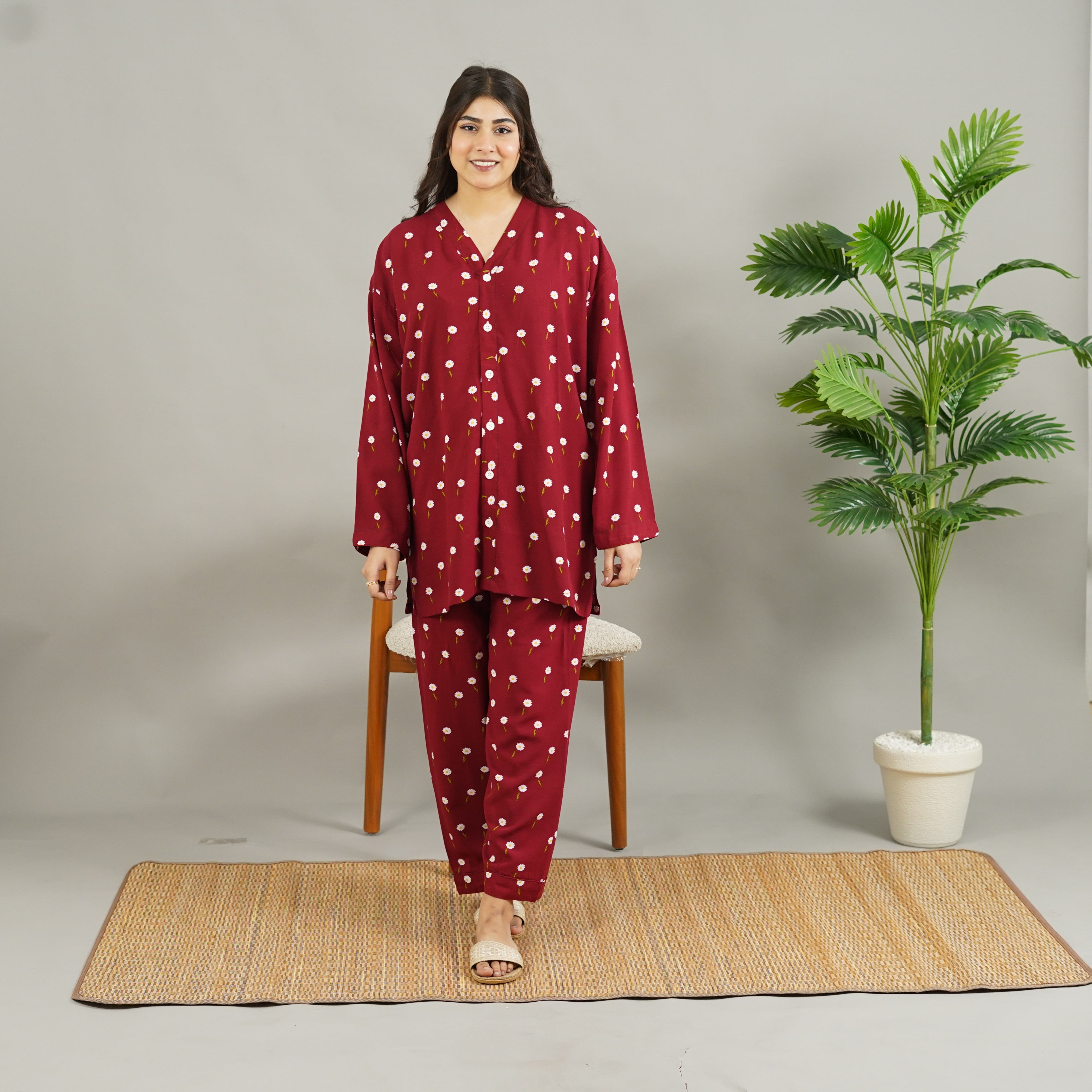 MAROON DAISY SUMMER LINEN MATERNITY/MODEST PJS