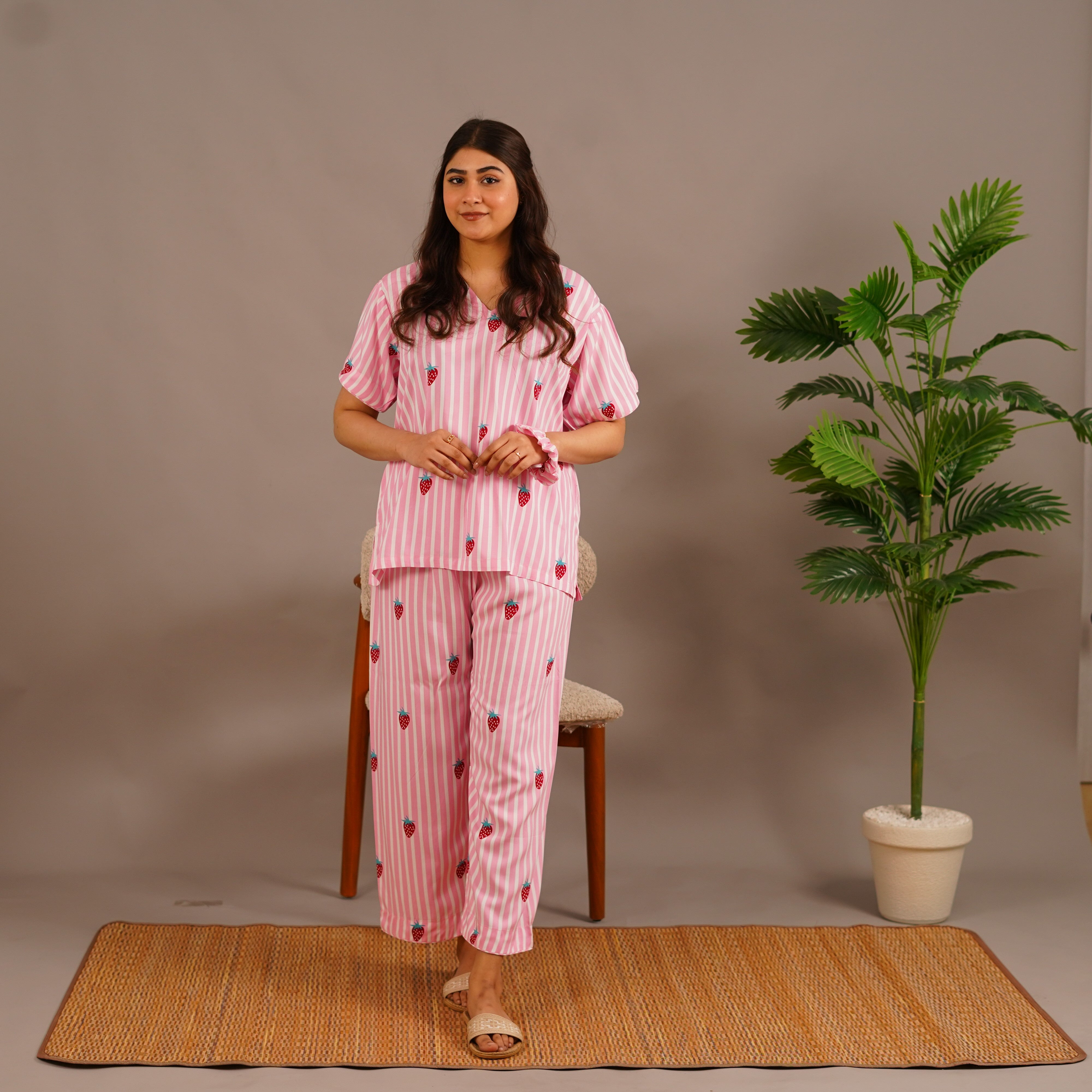 PINK BERRY STRIPES SUMMER LINEN RELAXED FIT