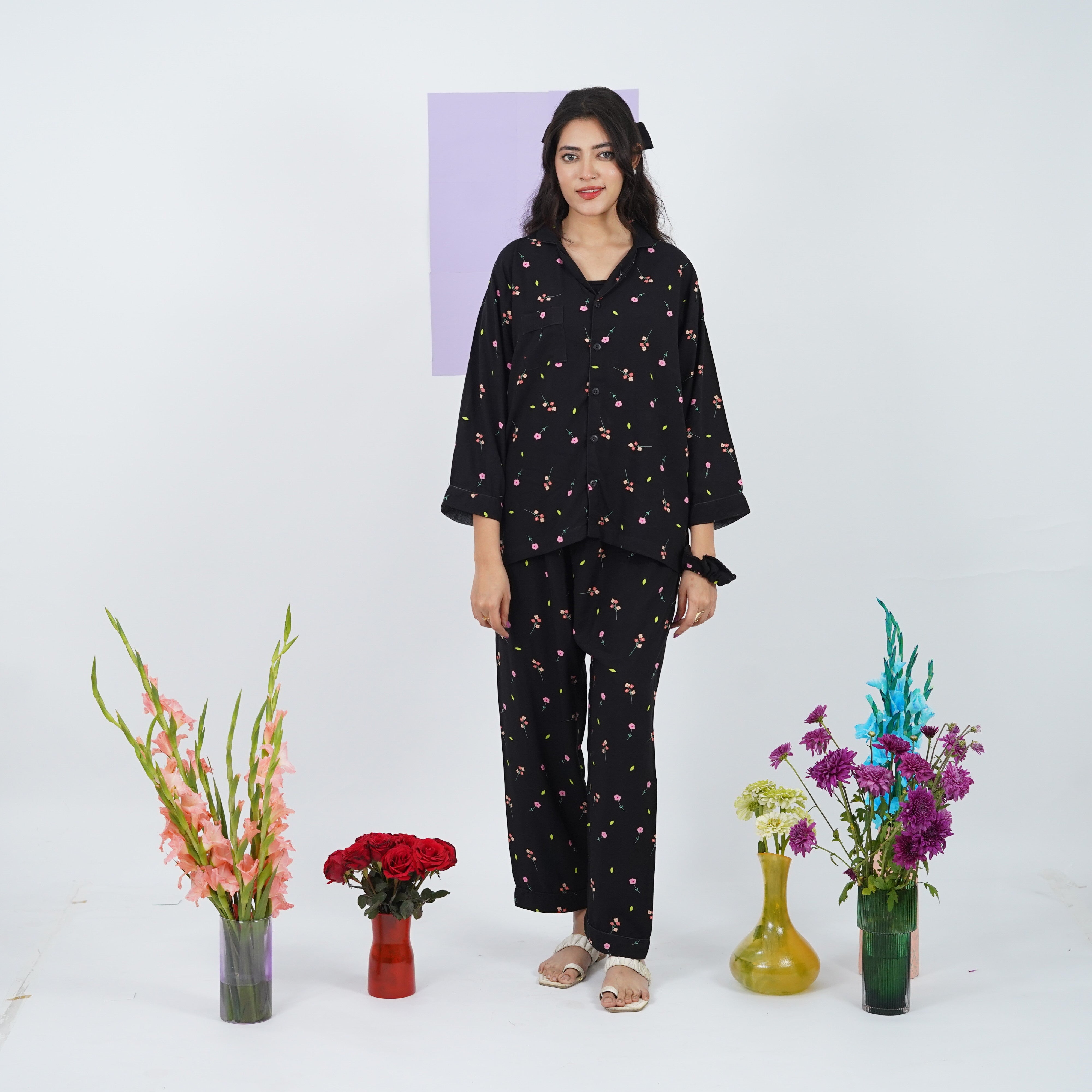 NOIR ROSETTE LINEN PJS