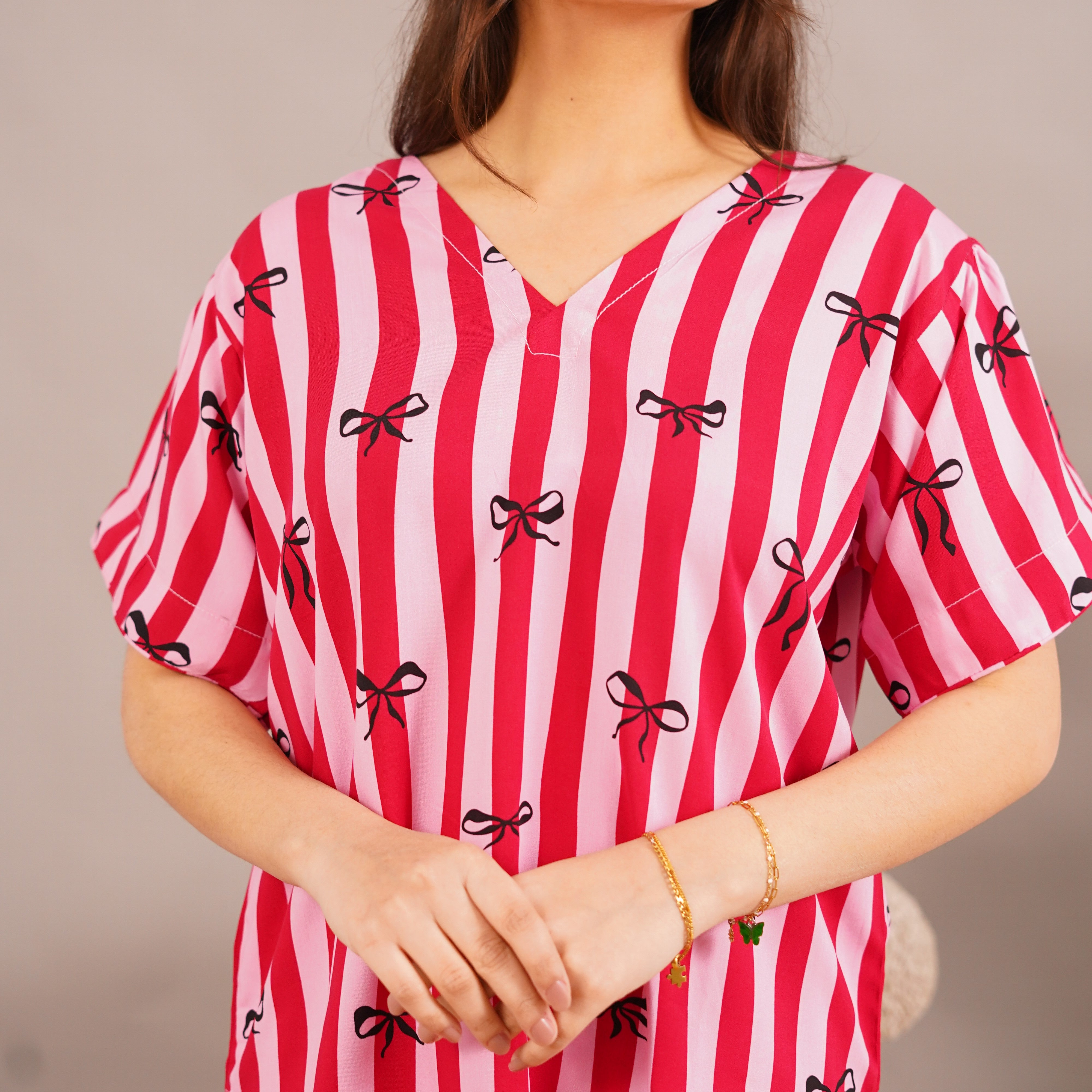 CANDY BOW STRIPES SUMMER LINEN RELAXED FIT
