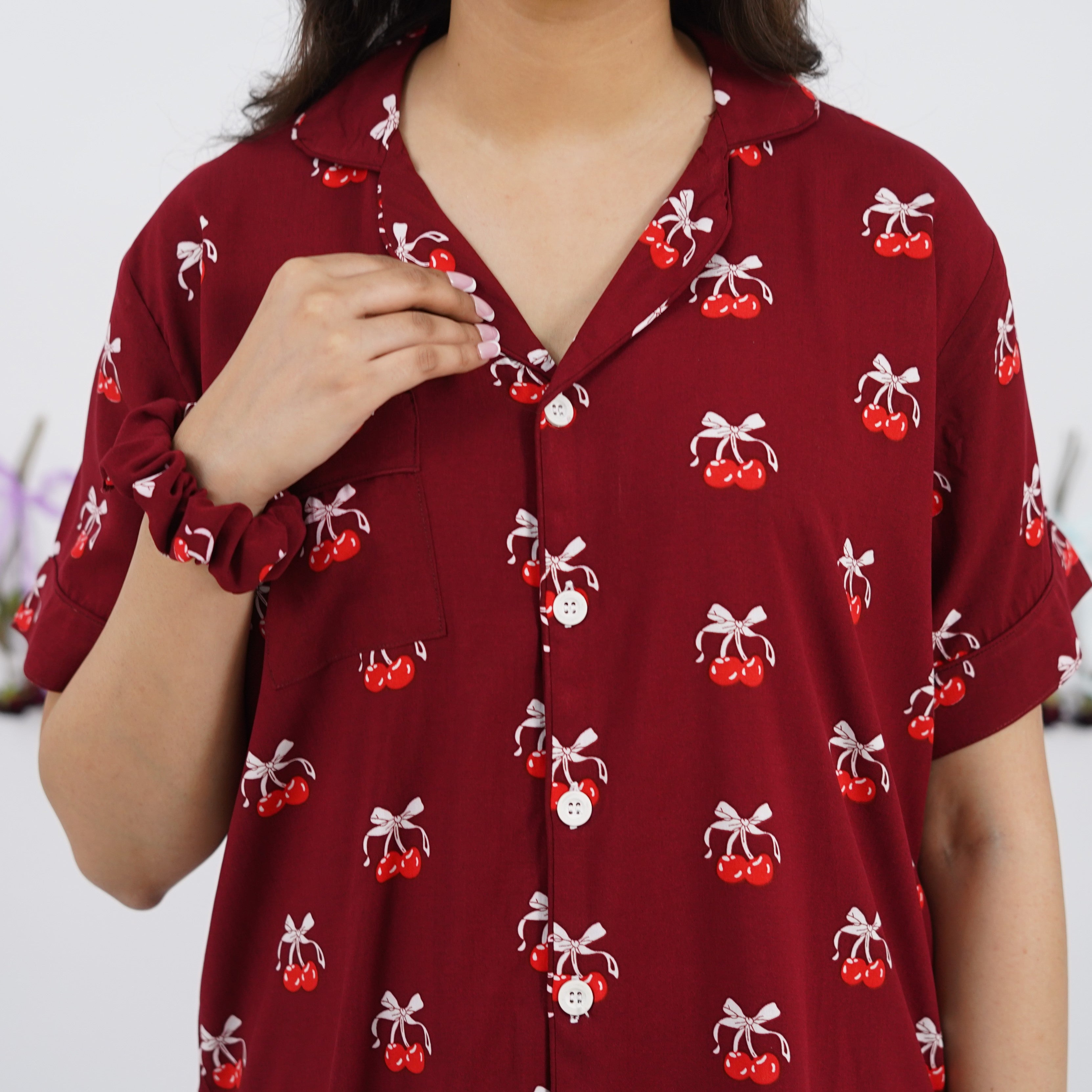 CHERRY BOW LINEN PJS
